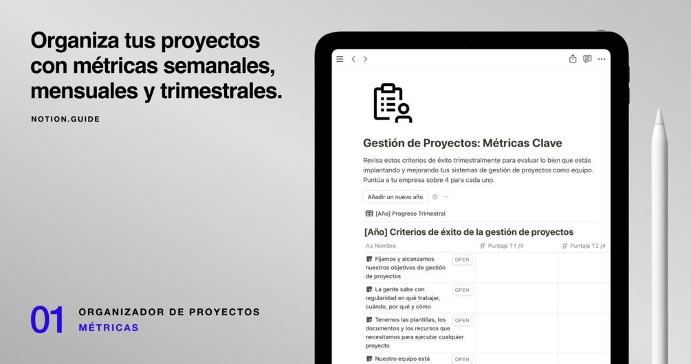 Organiza tus proyectos con métricas semanales, mensuales y trimestrales
